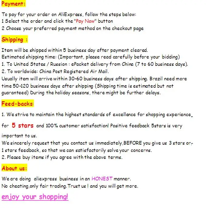If you have any questions, please do not open a dispute without contacting us .We can try our best to solve the problem for you.