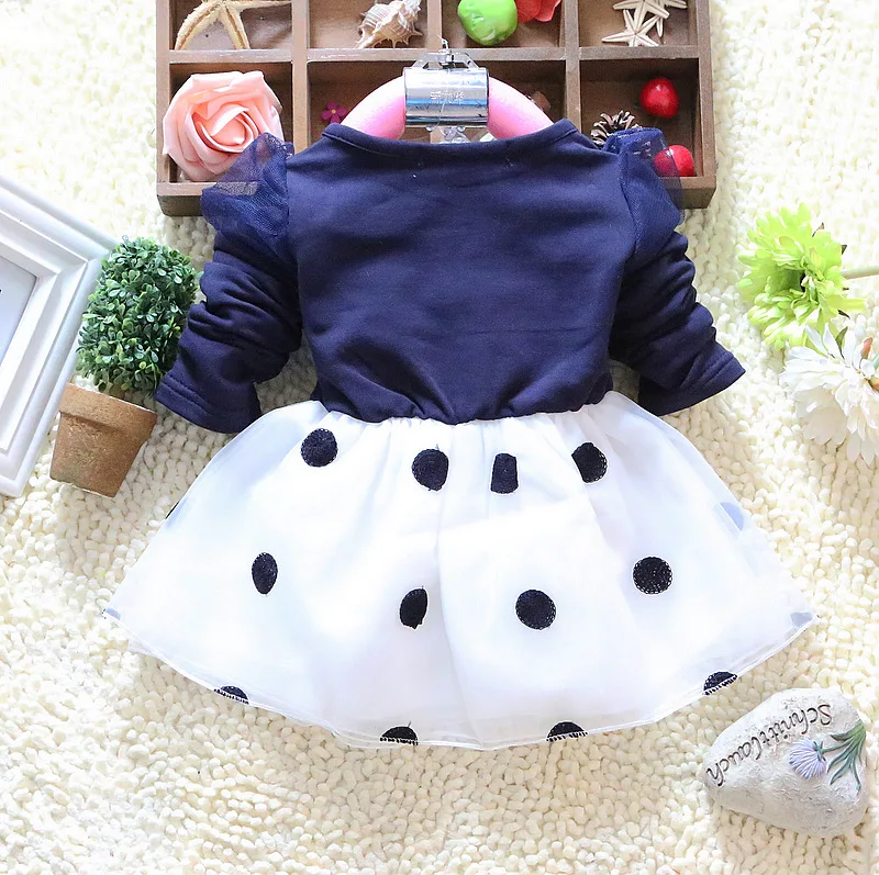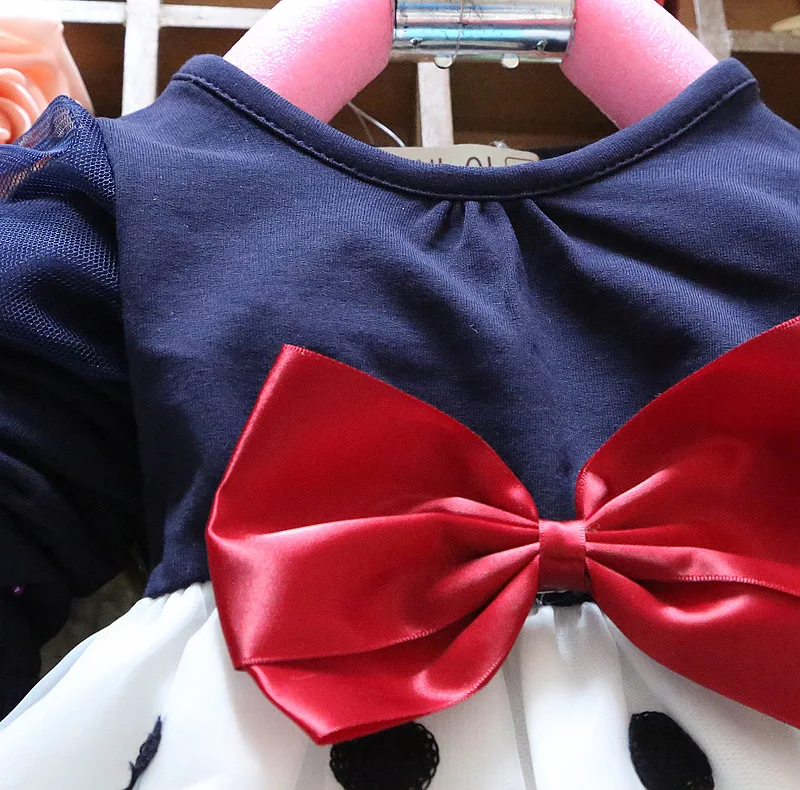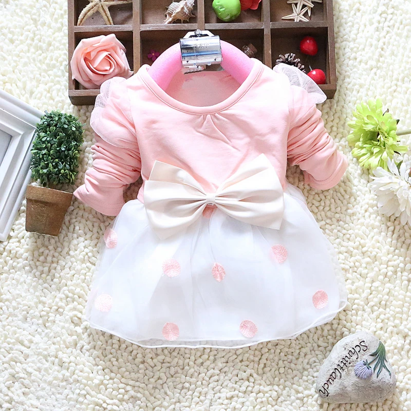 2017 Hot Sales Baby Girls Dress Cute Bow Long Sleeve Spring Sport Princess Style Party Clothing Baby dress 0-2 Years