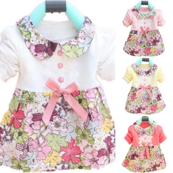 Toddler Baby Girls Floral Princess Dress Bowknot One Piece Kids Dress Skirt 0-2Y