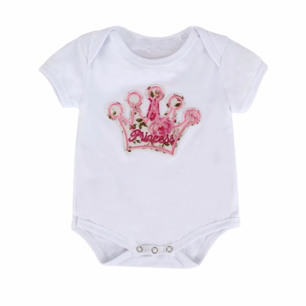 Home » » Baby Clothing » Baby Girls Clothing » Baby Girls Sets » 0-18M Cute Newborn Baby Girls Solid Color Crown Print Clothes Short Sleeve Bodysuit + Lovely PP Pants 2 Pcs Set