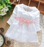 Fashion Autumn Long Sleeve lace Bow cute baby Party T-shirt ,girls kids Childrenprincess infant top