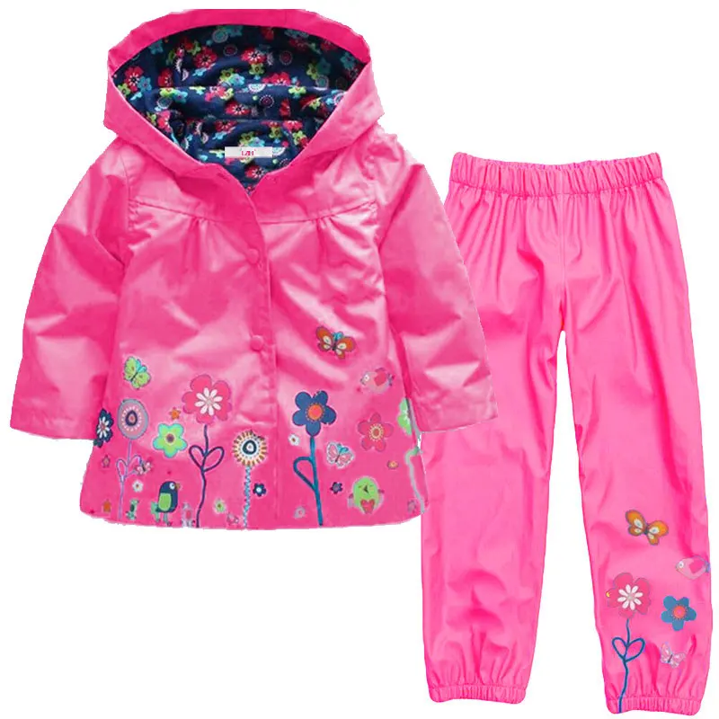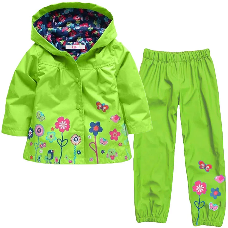 LZH Girls Boys Clothes Kids Raincoats Set Hooded Raincoats Jacket + Pants 2017 New Spring Girls Clothes Sets Children’s Clothing