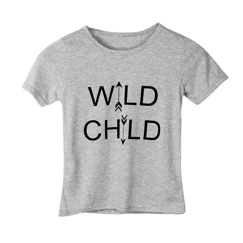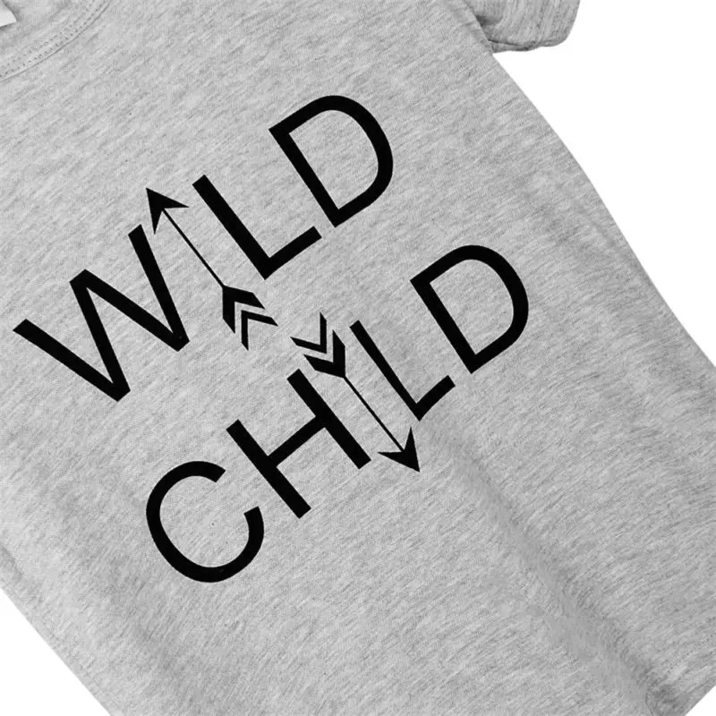 WILD CHILD Letter Cute Kid Boy Girl Short Sleeves Tops T-Shirt Casual Summer Baby Clothes