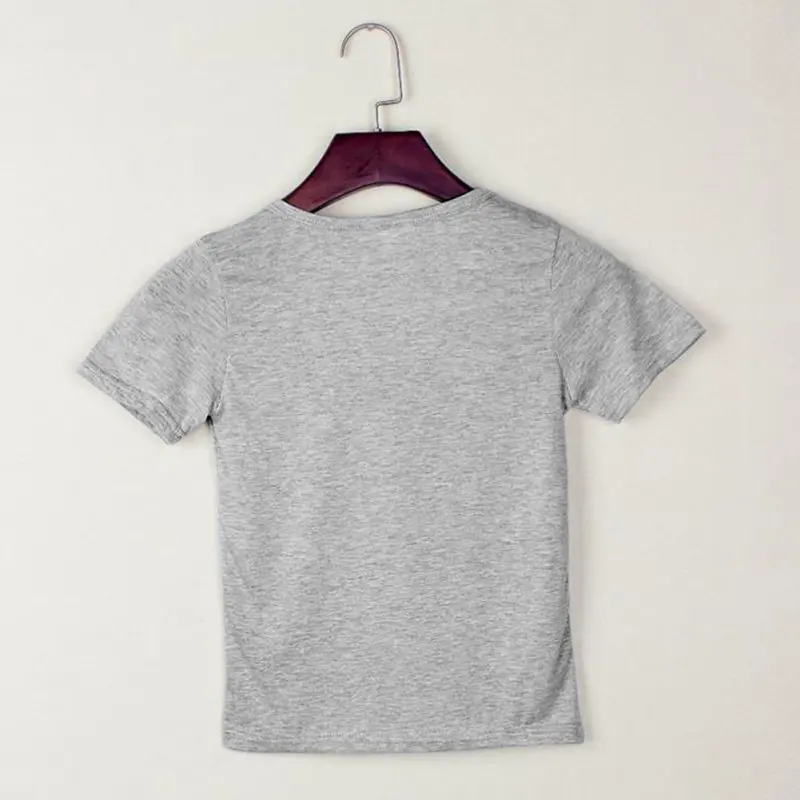 Descriptions 100% Brand New and High Quality. Very comfortable for baby. Occasion: Everyday,Holiday,Party Material: Cotton Blends Main Color: Gray Size: Fit for 2-7Y T-Shirt Size Details: Size Length Bust*2 Shoulder Age Recommended 2T/ 90 40cm/15.74″ 26cm/10.24″ 23cm/9.05″ 2-3Y 3T/100 42cm/16.53″ 28cm11.02″ 24cm/9.44″ 3-4Y 4T/110 44cm/17.32″ 30cm/11.81″ 25cm/9.84″ 4-5Y 5T/120 46cm/18.11″ 32cm/12.6″ 26cm/10.23″ 5-6Y 6T/130 48cm/18.89″ 34cm/13.397″ 27cm10.62″ 6-7Y Package Included: 1x Kids T-shirt Note: * Due to the different monitor and light effect, the actual color of the item might be slightly different from the color showed on the pictures. Thank you! * Please allow 1-3cm measuring deviation due to manual measurement. * Asian size is smaller than EU/US/UK size; please check the detail size information before purchasing.Thanks.