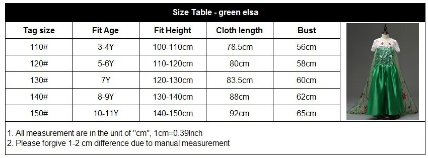 2016 summer green elsa costumes Girls Cosplay party Dresses Princess anna dress vestidos de festa meninas for children