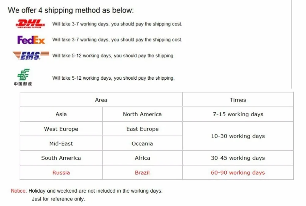 | Color | 85-98% Similar to the pictures , but there will be little color difference due to different monitors and lights | |||