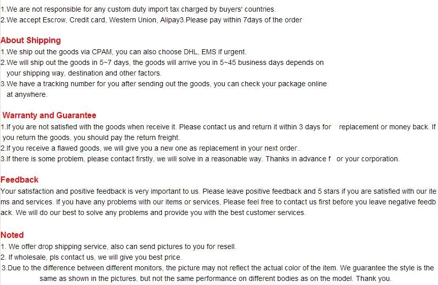 In order to deliver the goods correctly and timely, pls leave us a message on the style and colour before your order