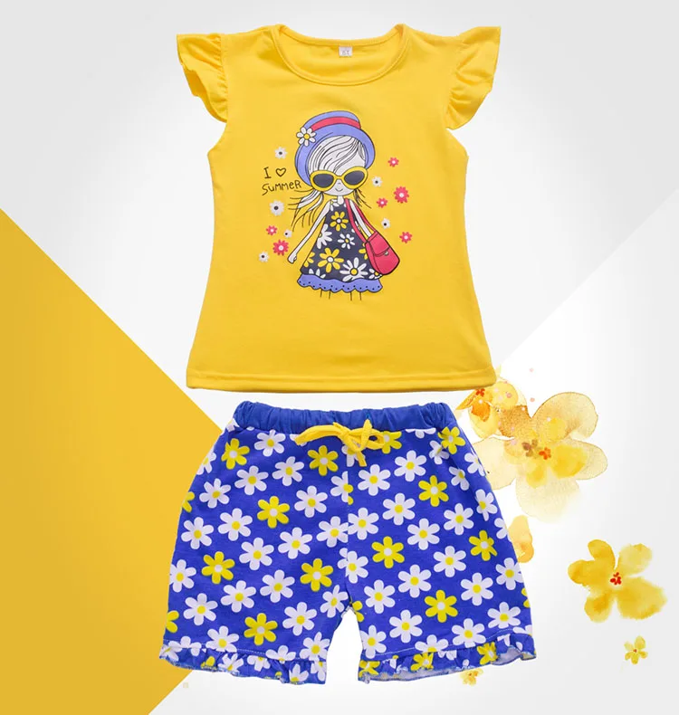 2016 Summer Kids Clothes Set Girls Clothing Sets Children Cartoon Printing T-shirt+Shorts Suits Baby Girl Clothes