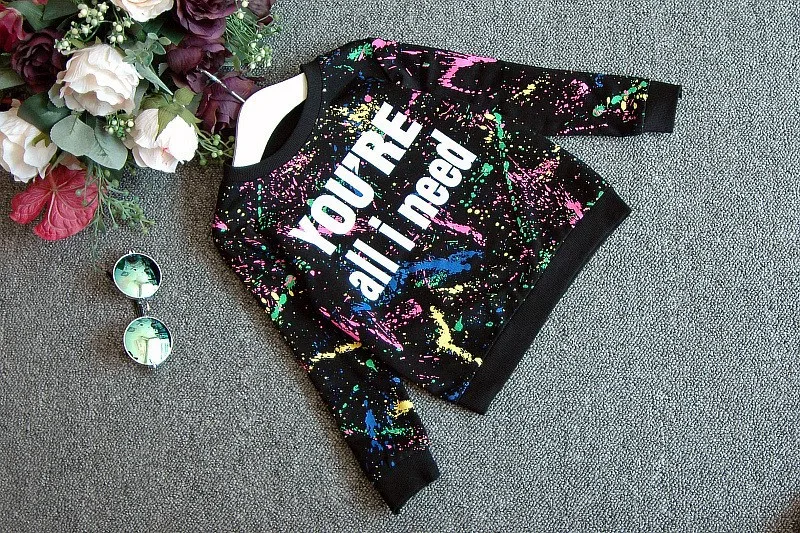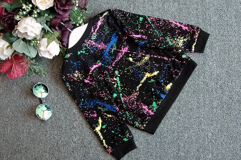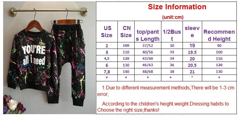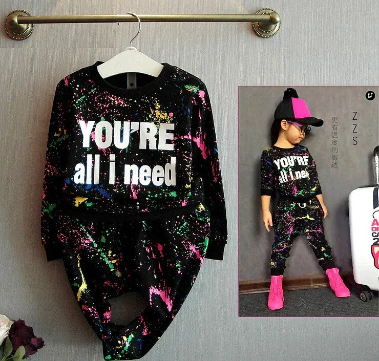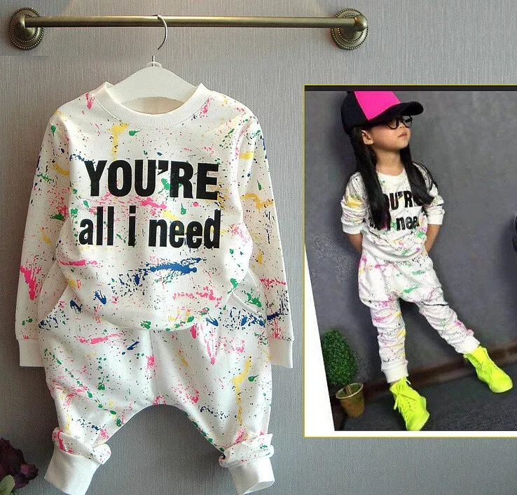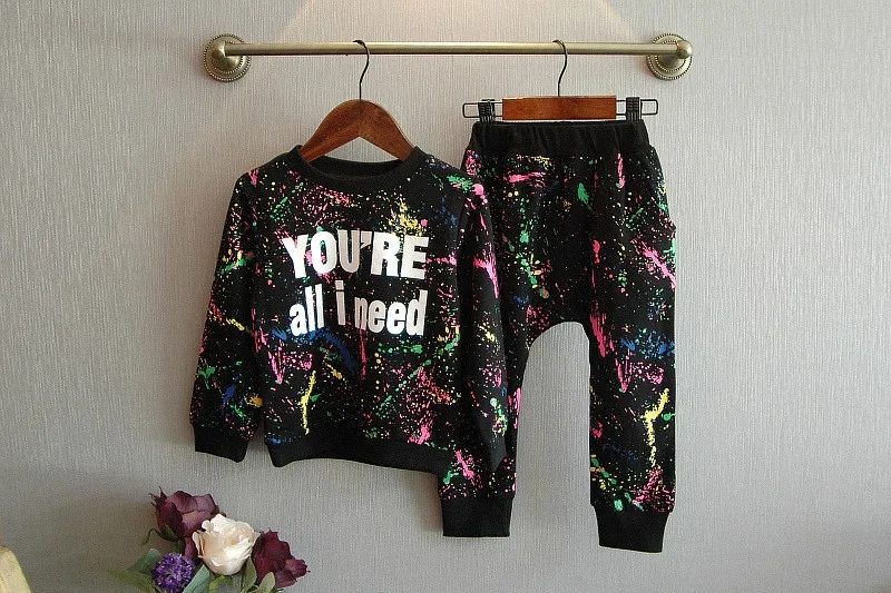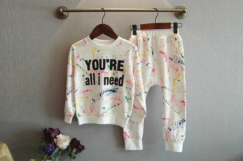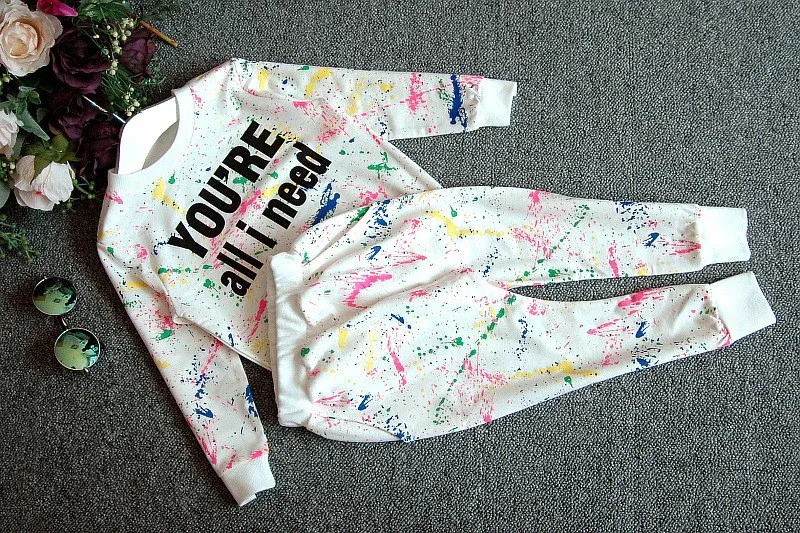 2PCS = 1pc tops+1pc pants Toddler girl clothing colorful printing T shirt girls tracksuit baby girls kids clothes