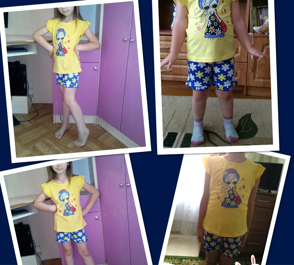 1. Girls Cartoon Print Clothing Set. Suitable for 2~8 years girls. Shipping with individual package.