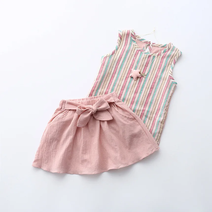2017 brand new girls skirt summer cute kids clothes clothing striped T-shirt + skirt little girls dresses toddler clothing sets