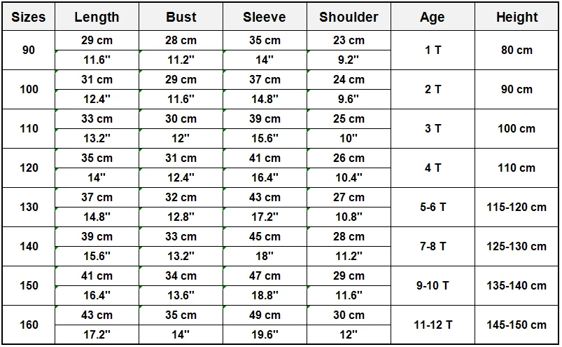 USD 5.57/piece USD 13.94/piece USD 15.80/piece USD 13.01/piece USD 13.01/piece USD 17.57/piece USD 11.15/piece USD 8.36/piece size specifictions(unit/cm) size 2t ,bust 26cm*2, length 48cm; size 3t ,bust 27cm*2, length 50cm; size 4t ,bust 28cm*2, length 53cm; size 5t ,bust 28cm*2, … Read More