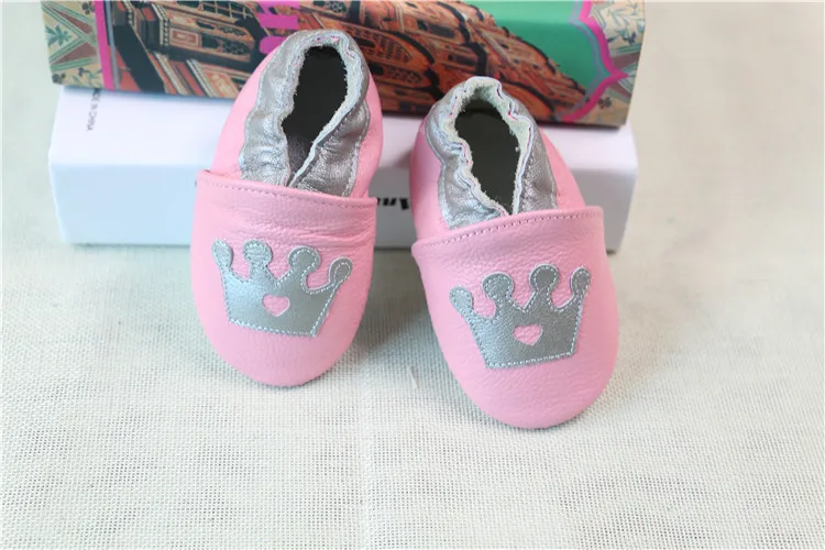 100% Genuine Leather Baby Boys Shoes Baby Moccasins Crown and Stars Soft Bottom First Walkers Free shipping