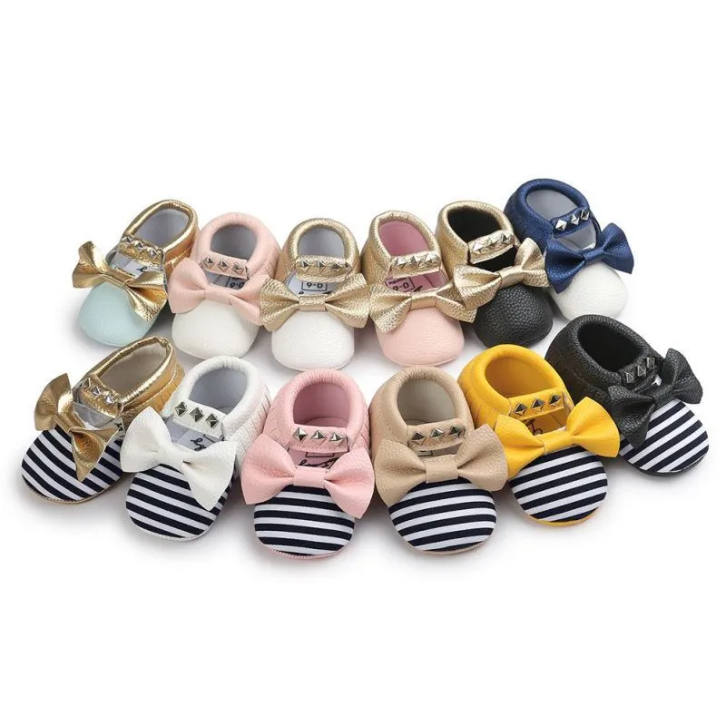 Baby Boy Girl Moccasins Soft Moccs Shoes Bebe Fringe Soft Soled Non-slip Footwear Crib Shoes New PU rivet Leather Newborn