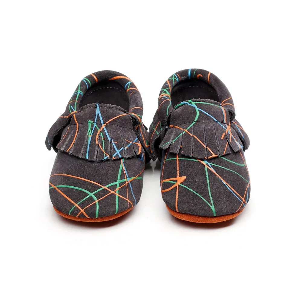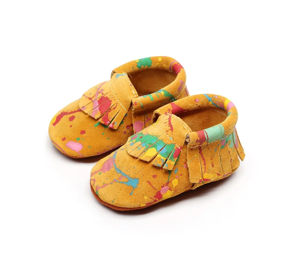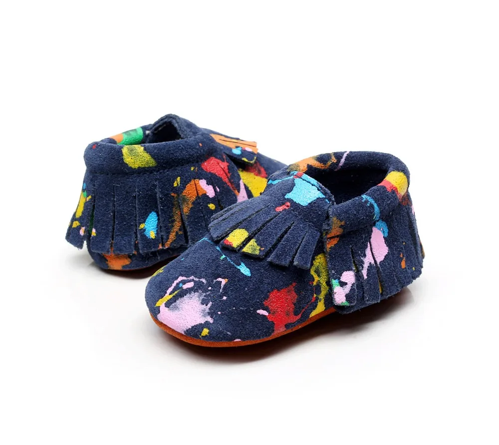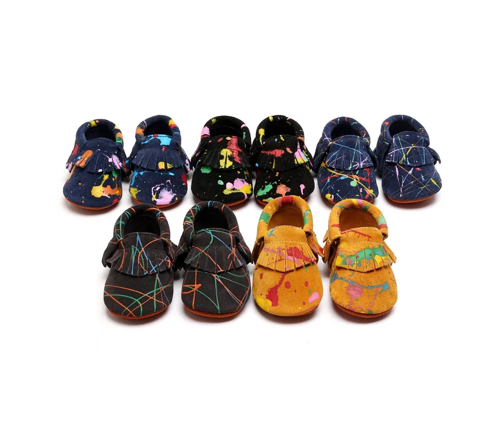 2017 Baby Moccasins New Graffiti Tassel Suede Genuine Leather Newborn First Walkers Soft Sole Baby Infant Kids Moccasins Shoes