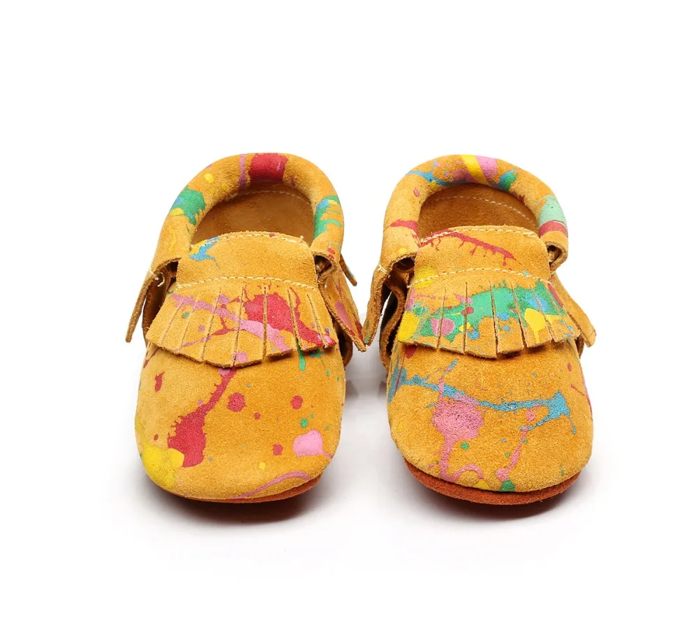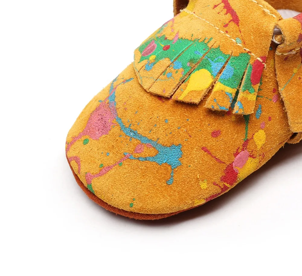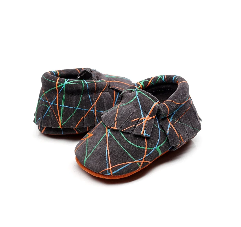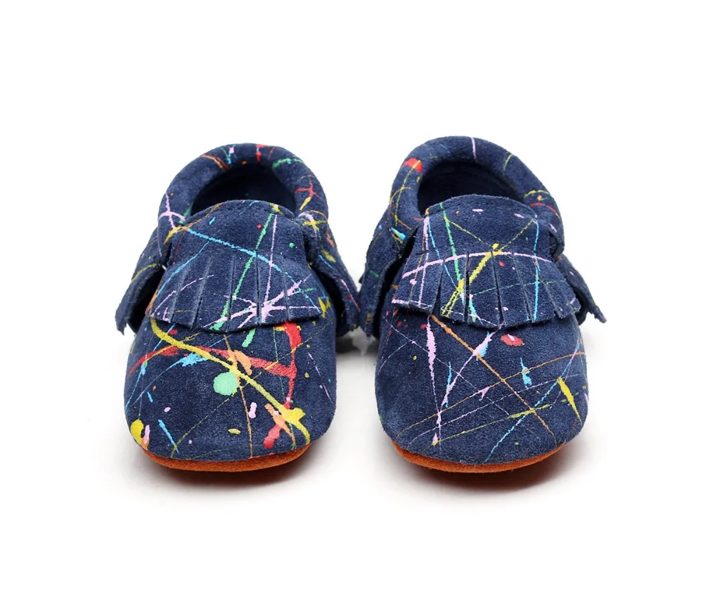 2017 Baby Moccasins New Graffiti Tassel Suede Genuine Leather Newborn First Walkers Soft Sole Baby Infant Kids Moccasins Shoes