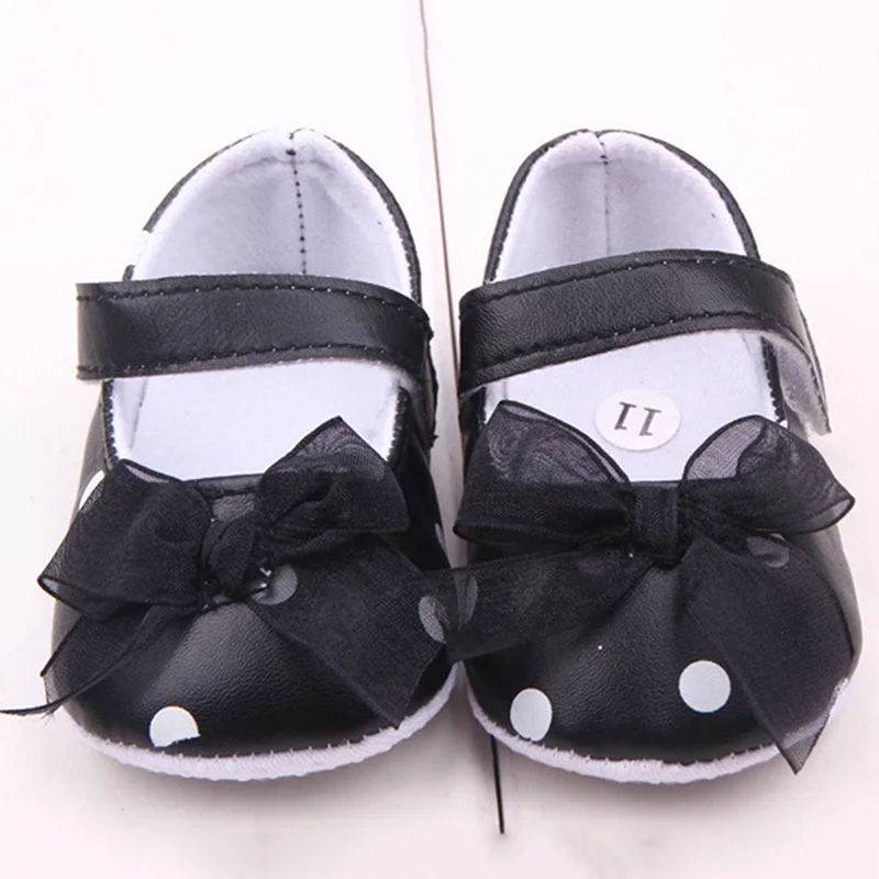 Kids Baby Girls Sweat Polka Dots Printed Shoes PU Leather Bow Decor Princess Shoes
