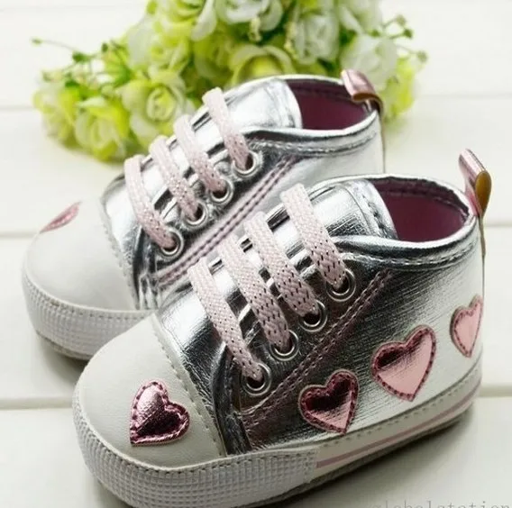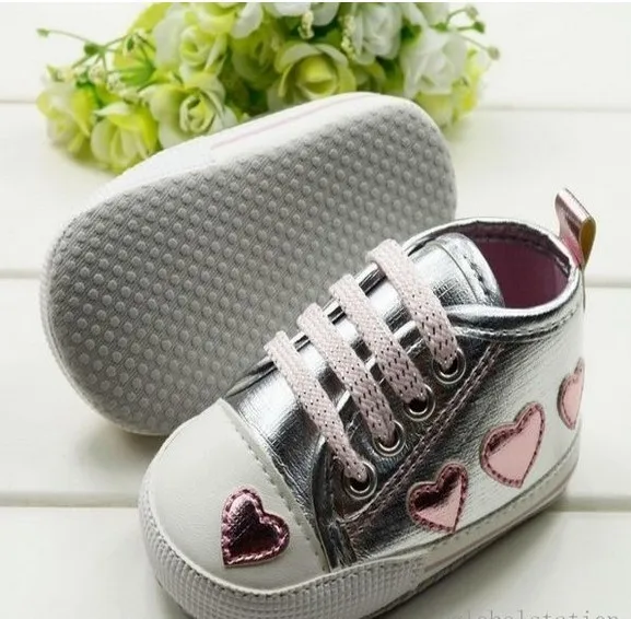 Cute pink Love Style Kid Toddler Baby Girl Silver Crib Heart Soft Shoes Walking Sneaker 0-18 M