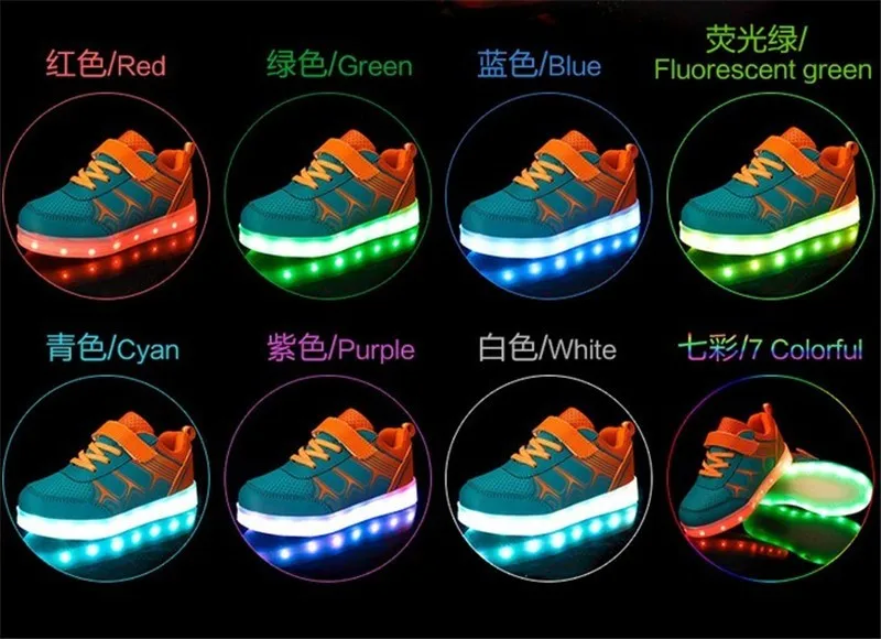 Led Shoes Kids USB Charging 7colors Boys Girls Feetwear Luminate Glowing Children Shoes With Light Up Size 25-37 tenis led infant