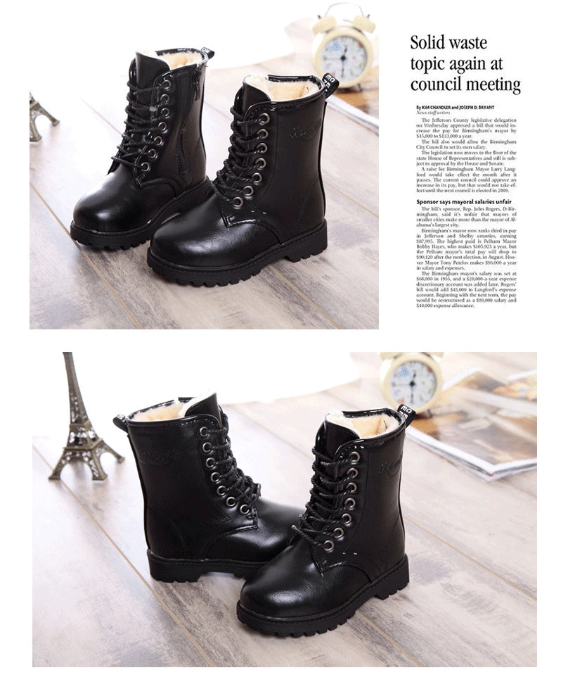 Linnonong 2017 New Children Snow Boots Fashion Kids Boys Girls Martin Boots Winter Child Wool Warm Boots Size 27-37