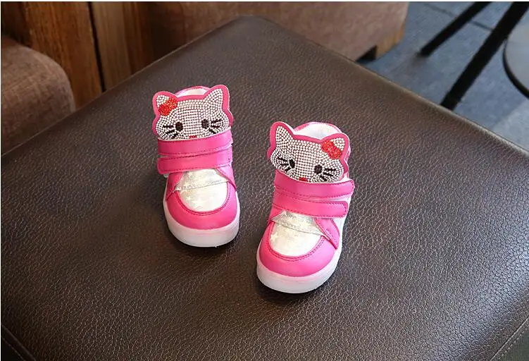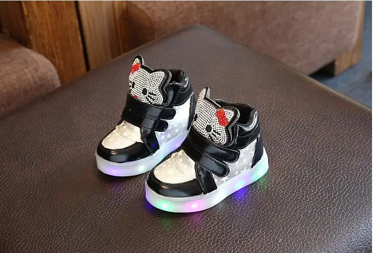 Children cartoon KT casual shoes new network hollow breathable sports shoes girls flashing LED fashion glowing sneakers 21-30