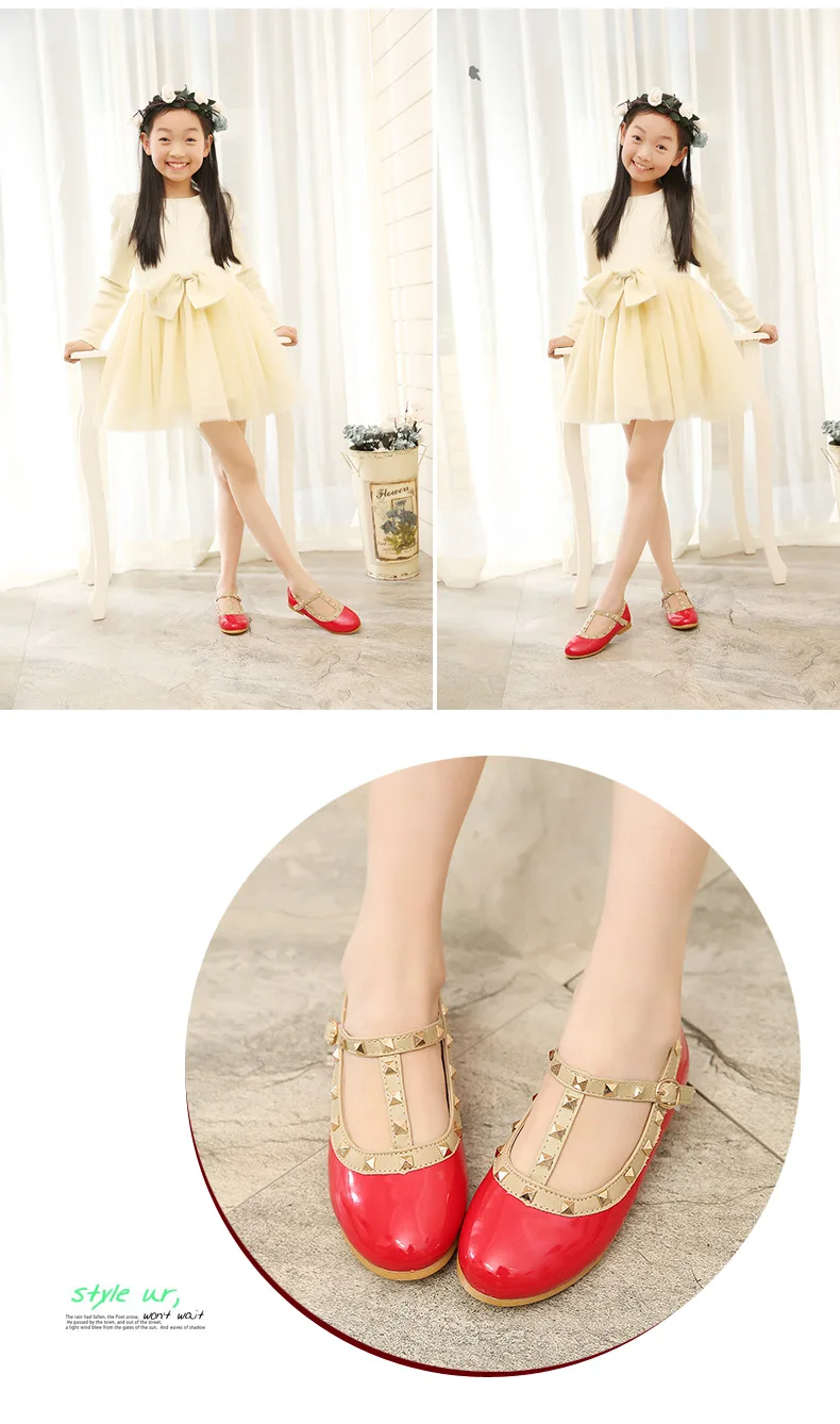 Children’s shoes spring autumn rivets toddler girls single fashion with princess wedding shoes brand sapato infantil menino 503