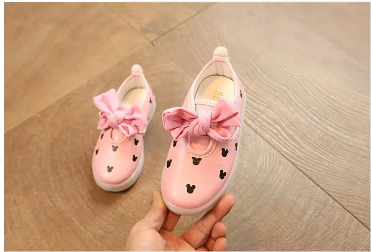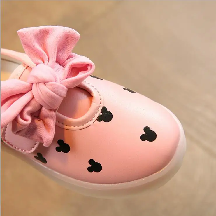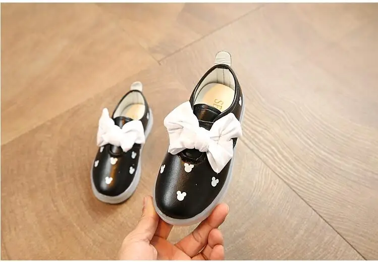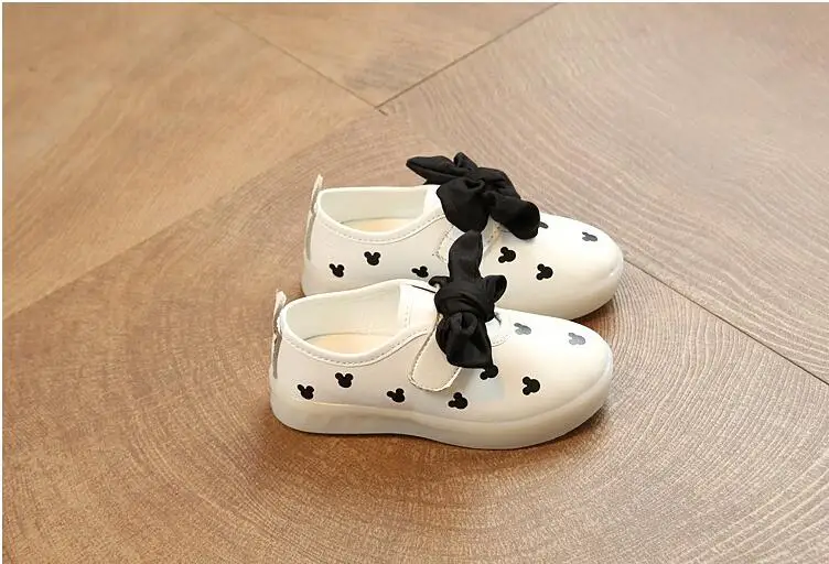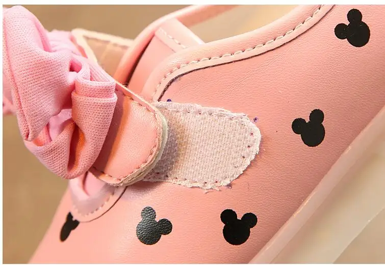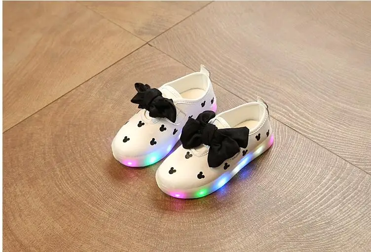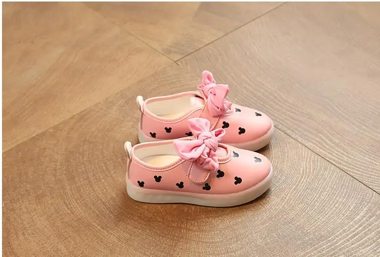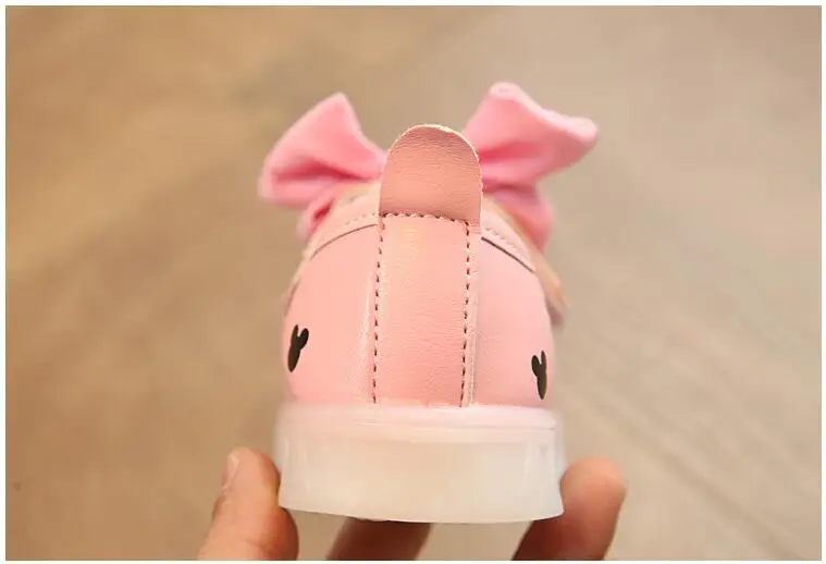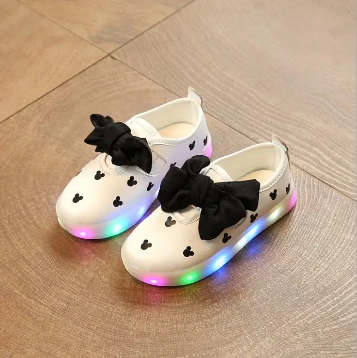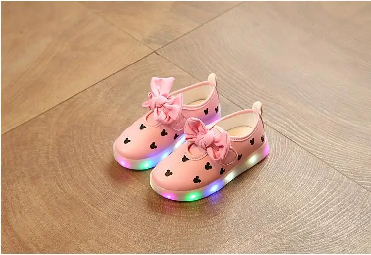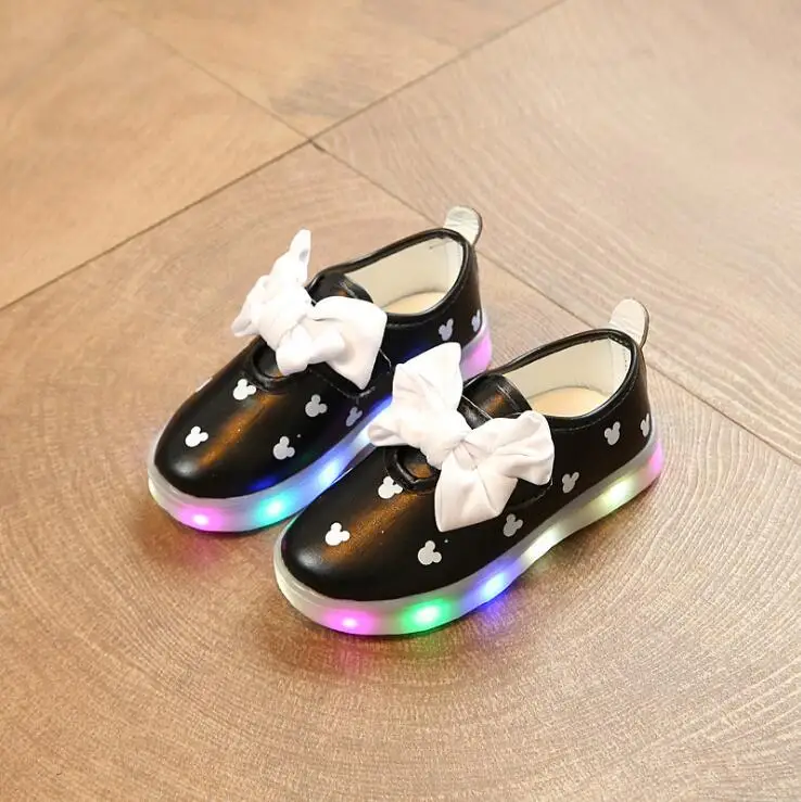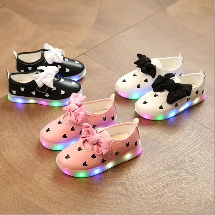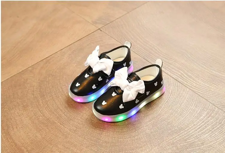 Spring Autumn 2017 Girls shoes Led Colorful Flash Light Shoes Bowknot Kids Sneakers Children’s Cartoon Flat Shoes