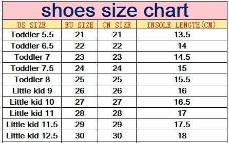 Notes: 1.Please strictly follow the size chart to select the size. Don’t select directly according to your habits. Please allow insole length 0.5 cm error due to manual measurement . 2.Insole length = kid’s foot length + 0.5 cm. You also can +1 cm if baby feet are fat. You’d better measure baby foot length by ruler. 3.The size number marked in the shoes’ sole is China size, not EU size !!! The length number which you see marked in the shoes outsole is useless, not insole length which we write in the size chart !!!! 4. Most shoes will be perfectly delivered to your hand 🙂 .We have tried our best to reject some shoes of visiable gule.But A little little Gule mark of partial shoes is happened inevitably during the factory production. If you cannot even accept any little little gule,we’re sorry that you may can try other stores. 5. If ordered the wrong sizes by yourself or just not like the shoes, you can return the shoes to us. We can refund you the money except the shipping charge from China to your destination (which we have paid the China post or other express) . 6. All shoes will be shipped with bubble bags,no boxes !!!