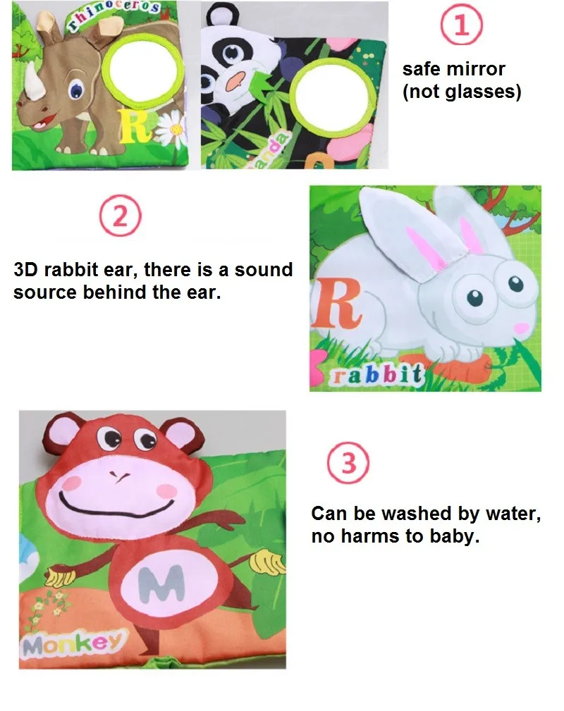 Infant Activity Book Cartoon Animal Soft Baby Educational Toy Cloth Book Plush Animal Story Intelligence Developing Toy KF030