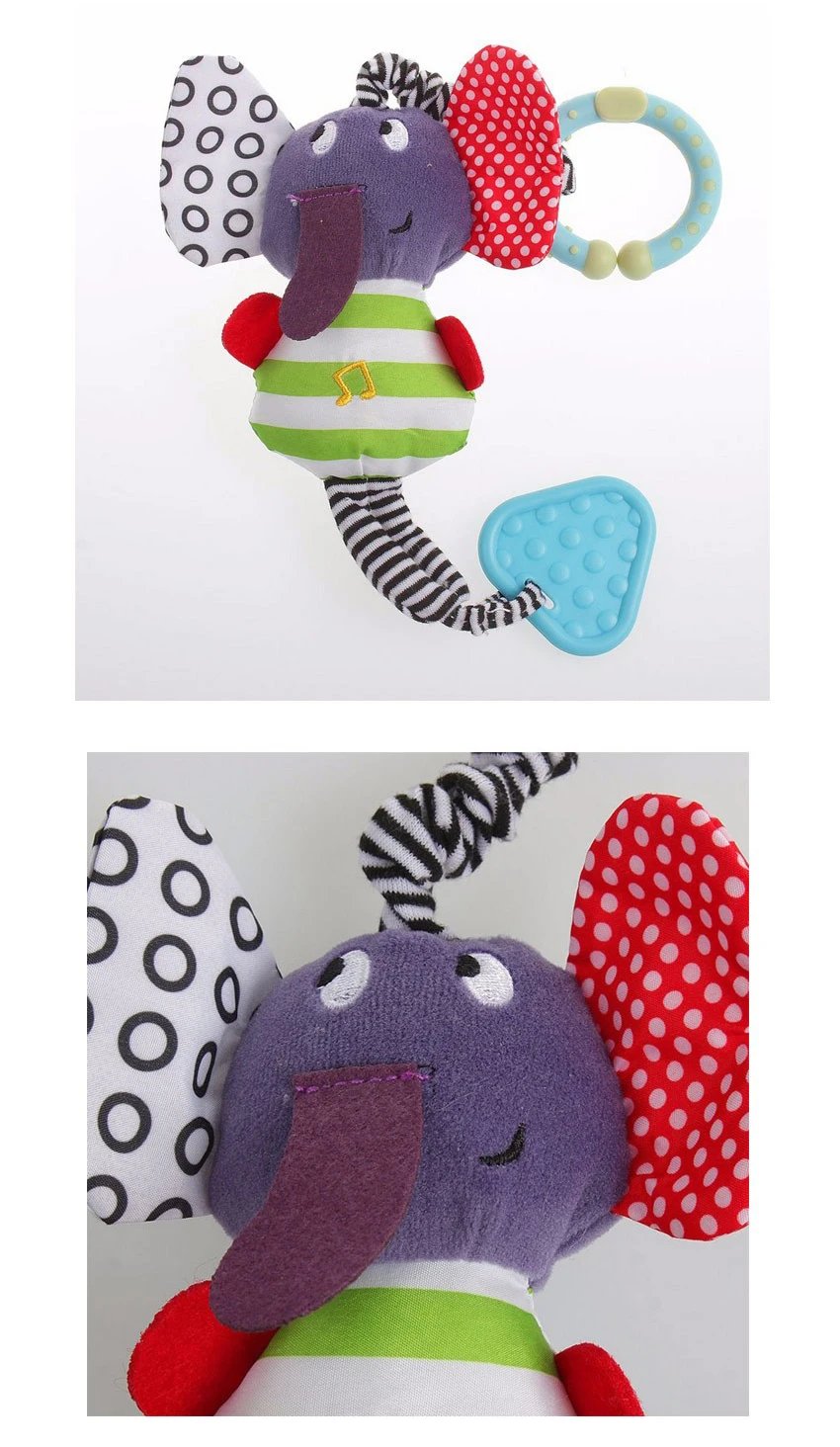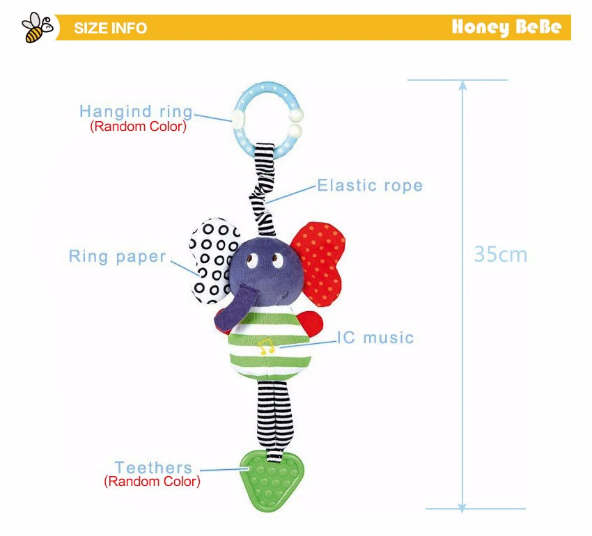 Material: Plush Size: 20*18.5cm Color: Elephant, Owl, Puppy, Fox, Monkey, Lion, Zebra Age: 0-3 year-old Feature: Rattle, Pacify, Massage, Teether Package: opp bag (no retail box)