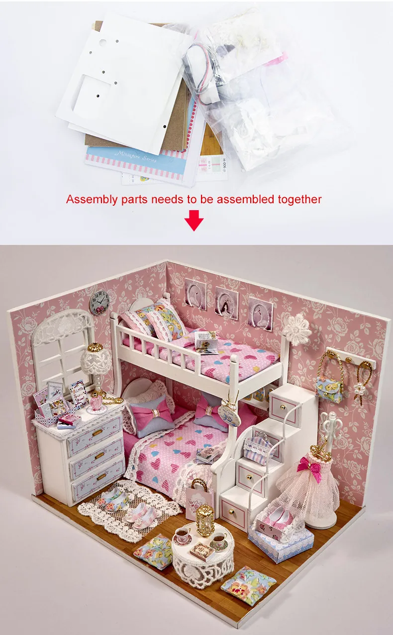 Doll house assembly parts will be shipped,and you need to assemble them together in following English instruction!