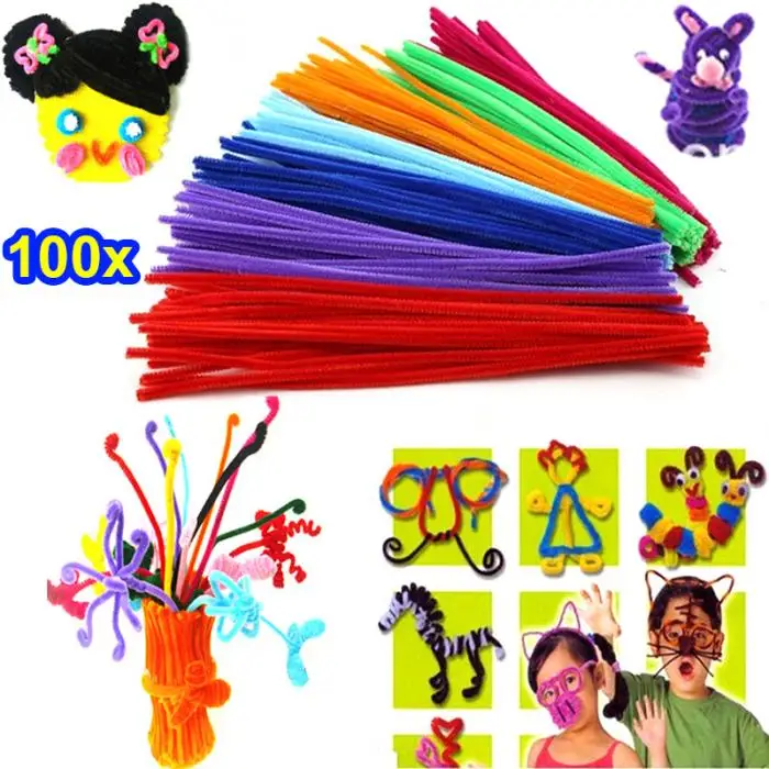 100PCS Kids Child Plush Sticks Rainbow Colors DIY Materials Education Handmade Art Craft Toy Creativity Devoloping Toys @Z310
