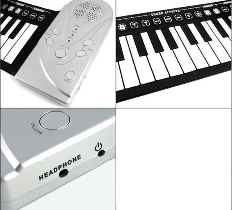 Material: Silicone rubber (keyboard); ABS plastic (control panel) Power: DC 6V ( not included ) or 3*Battery AA (not included) Keyboard: 73× 17.1× 0.3cm(L*W*H) Description: 49 keys soft keyboard. (Standard Piano Key 4 Octave + 1 key) On the surface of it, there are rhythm, drum, sound effects, chords and learning function keys for you to adjust the modes conveniently. Has 8 drum modes, one key for one mode, 16-level volume control, 32-level rhythm control, and power saving sleep mode. 16 tone functions. 10 rhythm options. Built-in 6 demo songs for your appreciation and learning. The sound of built-in speaker is fruity and melodious, fully adjustable, illuminated volume control. Packet: 1x Silicone Piano 1x Power plug