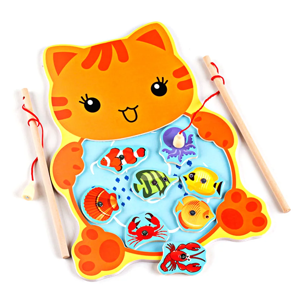 Description: Item Type: Magnetic fishing game board Material: Wooden Color: as picture shown Board Figure: Cat, frog Weight: About 0.2kg/0.44lb. Size: About 29 x 21.5 x 0.5cm/11.4 x 8.46 x 0.20in. Fishing Rod Length: About 21cm/8.27in. Applicable Age: Ages 3 years and up Feature: With lovely cartoon shape, it is easy to attract children’s attention. With 2 fishing rods, it is a good tool for parent-child interaction. With 8 kinds of colorful sea animals, it is good for learning of color and animals. Ability Cultivation: Helps to train children’s hand-eye co-ordination skills, develop creativity and imagination, foster logic thinking, expand knowledge, and more. Warm Prompt: Please allow a little bit of size deviation due to different measurement. For the small items, please don’t swallow.