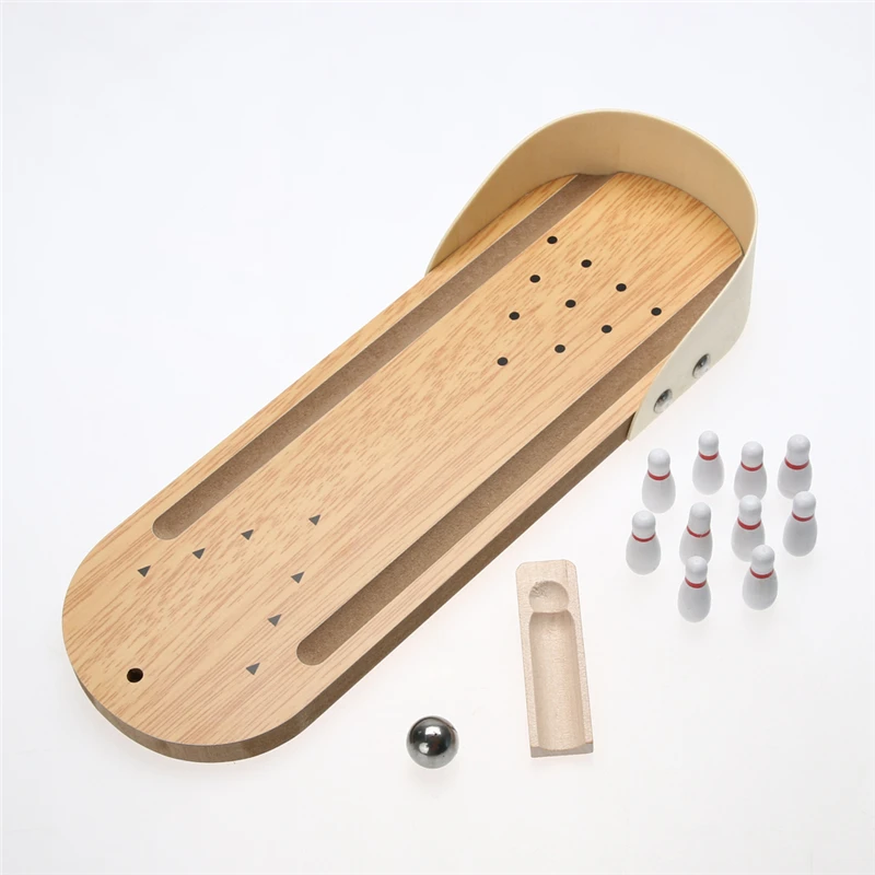Mini Entertainment Desktop Bowling Game Set Wooden Bowling Alley Ten Metal Pin Ball Desk Children Kid Toys