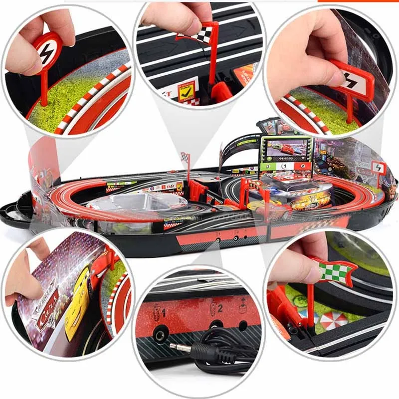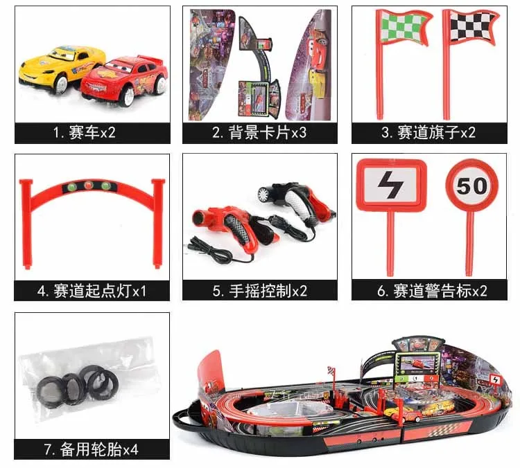 Product List: rail car*2+hand away remote control*2+Other scenes accessories( Figure)