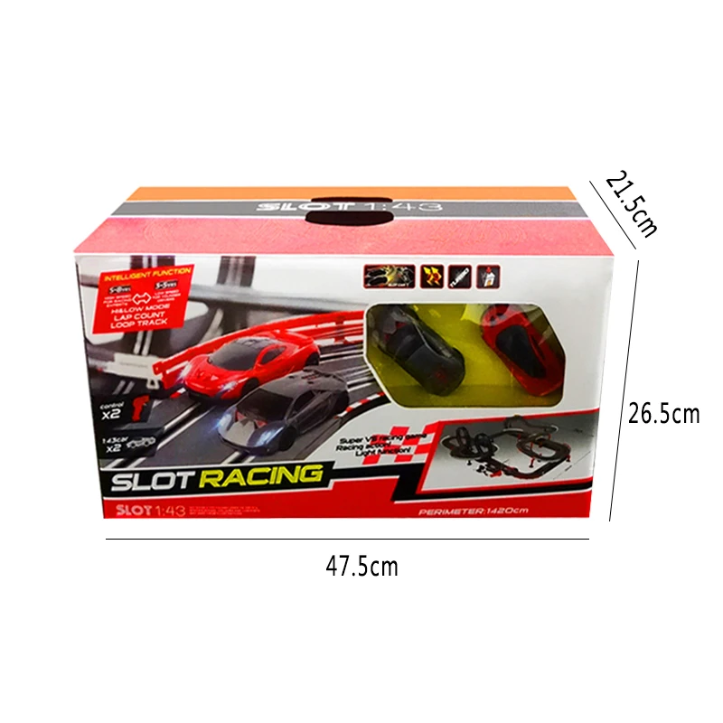 About Size: Please allow 1-3cm size differs due to manual measurement. ——————————————————————————————————————————– About Color: Pictures and real objects may be slightly different because of the different light and computer monitors. ——————————————————————————————————————————– About address: All buyers should provide full name and detailed address in order. ——————————————————————————————————————————– Product Description As Following: ========================================================================================== Material:nontoxic plastic, electronic devices Product style:color and style as shown (Note: small rail car color random shipments Track length: 1420CM Area: 184 * 170cm Racing car ratio: 1: 43 Packing size: Figure Selection: 1: two electric remote control + two hand remote control, and 2 racing car and track and accessories. 2, two electric remote control + 2 pcs racing car + tracks and accessories Different choice, different prices If you do not understand Please contact us