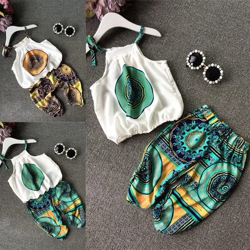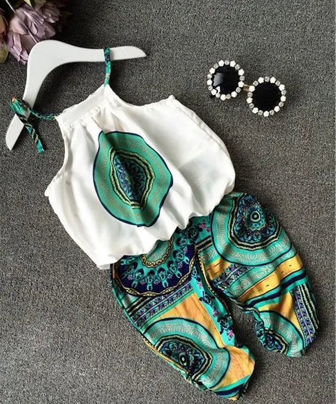| Welcome to our store!!! Fashion design,100% Brand New,high quality! Color: Green/Yellow Suitable Season :Summer ,spring Style: Kid Girl Outfit Vest Top + Pants 2Pcs Material: Chiffon Size Chart Size hint : hand meansure your baby daily clothes ,compare with this size chart , the size suggest that a large than usual 1cm=0.39inch Please note that slight color difference should be acceptable due to the light and screen. Package Inlcude: