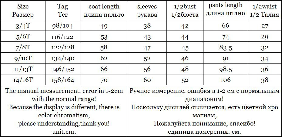 12M (tag6 ): coat length is 36cm,bust is 26X2cm,pants length is 29cm,s is fit for 65-75cm height 24M (tag8 ) : coat length is 38cm,bust is 27X2cm,pants length is 31cm,M is fit for 75-85cm height 3T (tag10 ) : coat … Read More