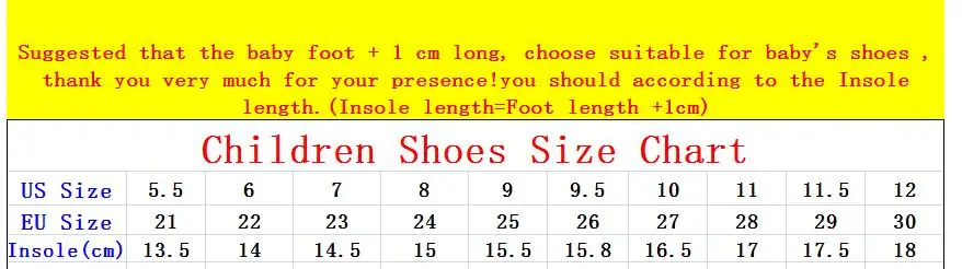 Because all children shoes size is difference,When you order the children’s shoes,you should according to Our size and internal length.