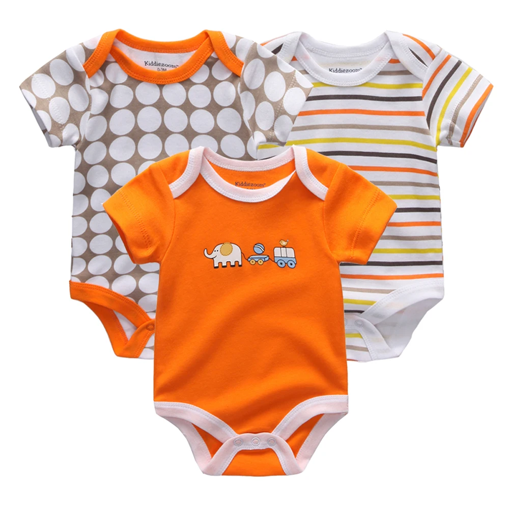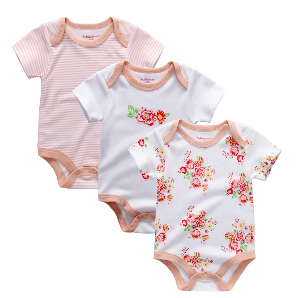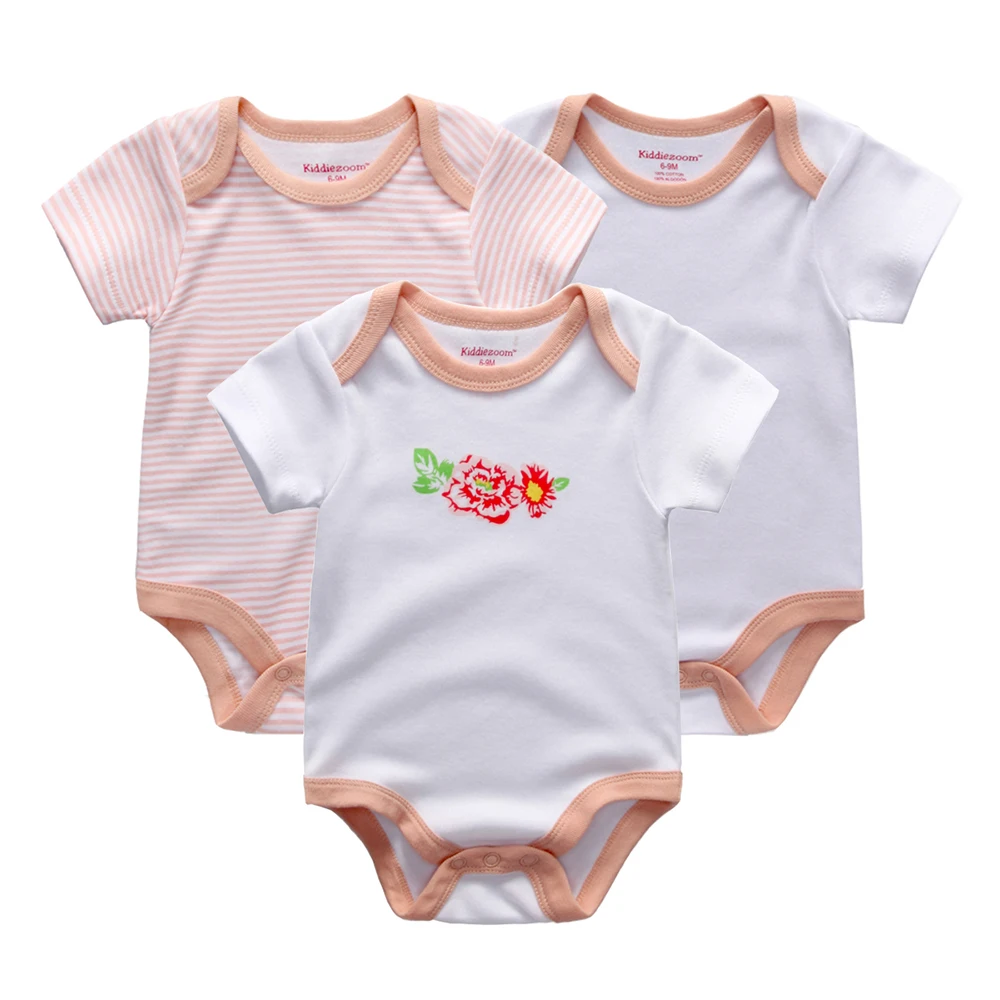 3PCS Newborn Baby Rompers Unisex Infant Clothes Cotton Short Sleeves Baby Boy Girl Clothing Cute Cartoon O-Neck Striped 0-9M