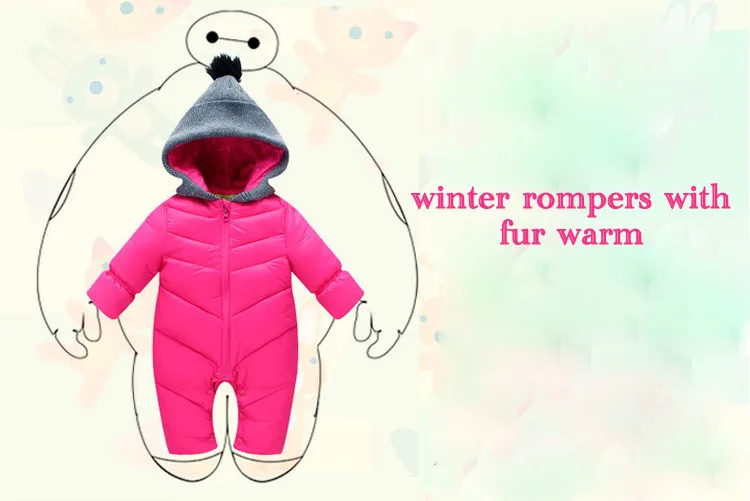Product name:Newborn Baby winter clothes Baby snowsuit duck down Rompers windproof new born girl boy Warm winter rompers with fur Hooded