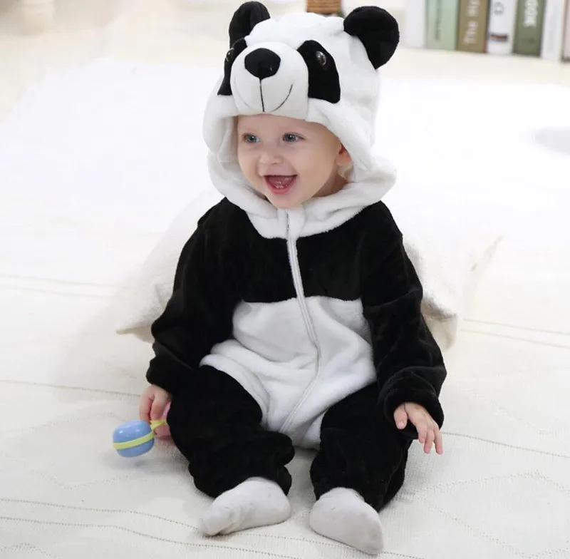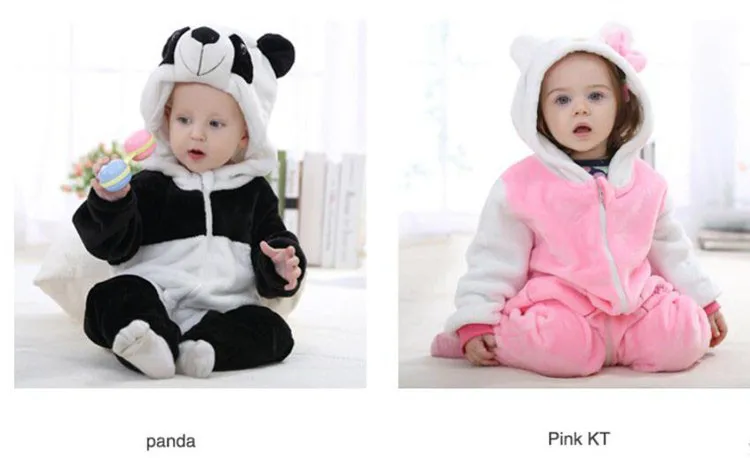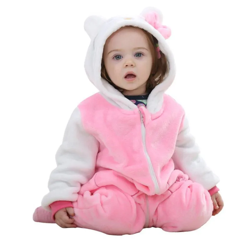 Kawaii Hello Kitty Panda Baby Girls Clothes Animal Baby Rompers Costume Winter Fleece Clothes For Boys Warm Snowsuit Jumpsuit