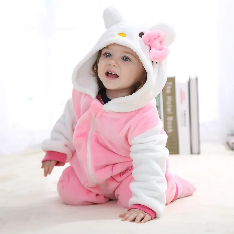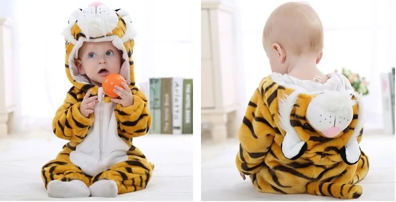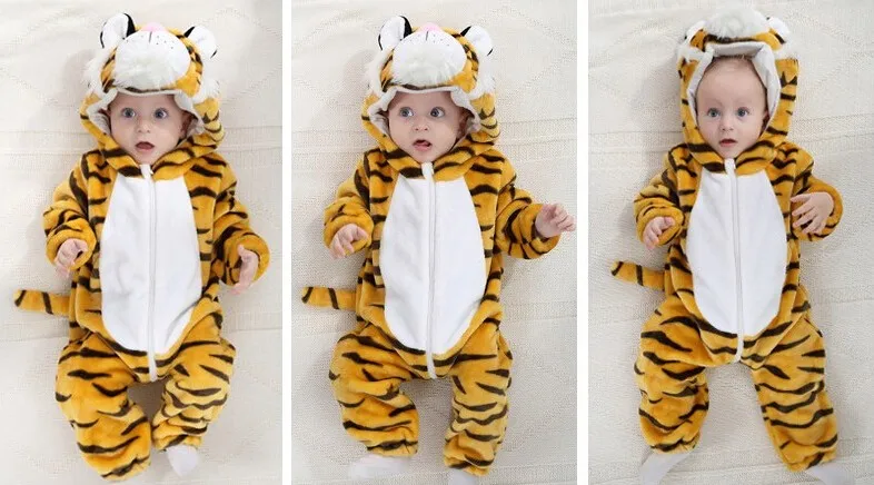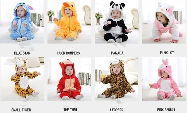 KID STATION Kitty Panda Tiger baby girls rompers clothes new born baby Cartoon Jumpsuit warm winter animal for boy snowsuit
