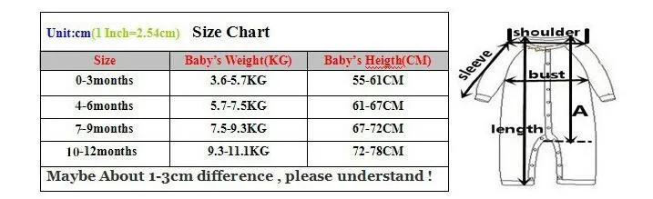 Size Bust(cm) Sleeve(cm) Length(cm) 0-3M 20.5 7.5 34 3-6M 21.5 8 36 6-9M 22.5 8.5 38 9-12M 23.5 9 40 1cm=03937 Inch.Measuerd lying flat, there can be 1~2inch differences. All size is Asian size,not US/European size,there will be 1-2 size … Read More