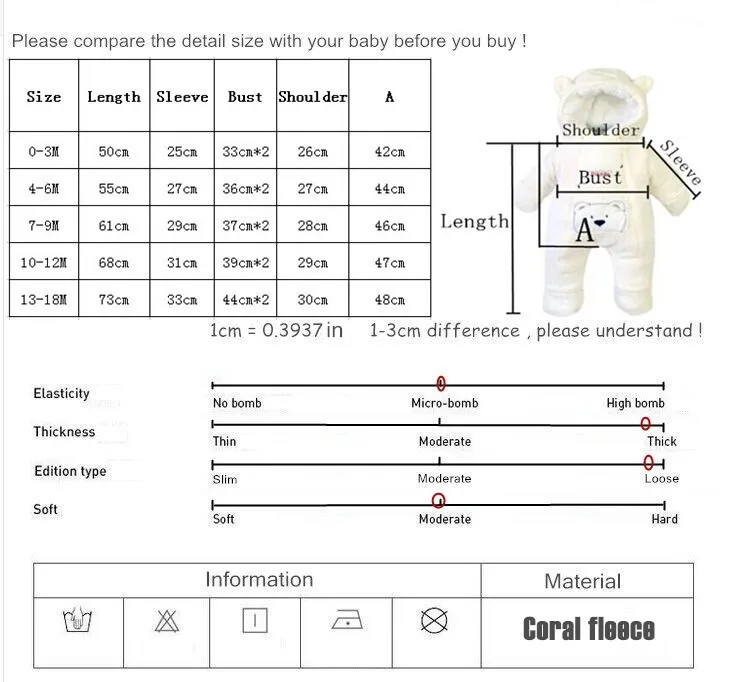 Size Chart (Unit:cm) Lable size 3-6 M 6-9 M 9-12 M 12-18 M 18-24 M Shoulder width 22cm 22.5cm 23cm 24cm 25cm Sleeve length 23cm 24cm 27cm 30cm 33cm 1/2 Bustline 28cm 29cm 30cm 31cm 32cm Clothes Length 30cm 32cm … Read More