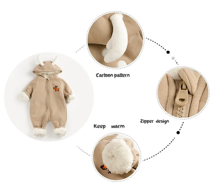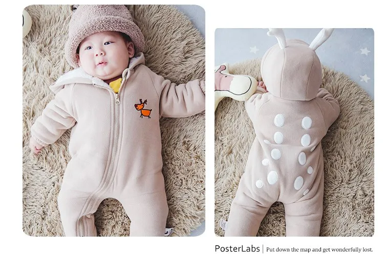 Baby christmas reindeer cotton snowsuit with hat newborn baby girl boy clothes skiing snowsuit for boys winter coats and jackets