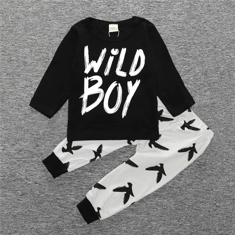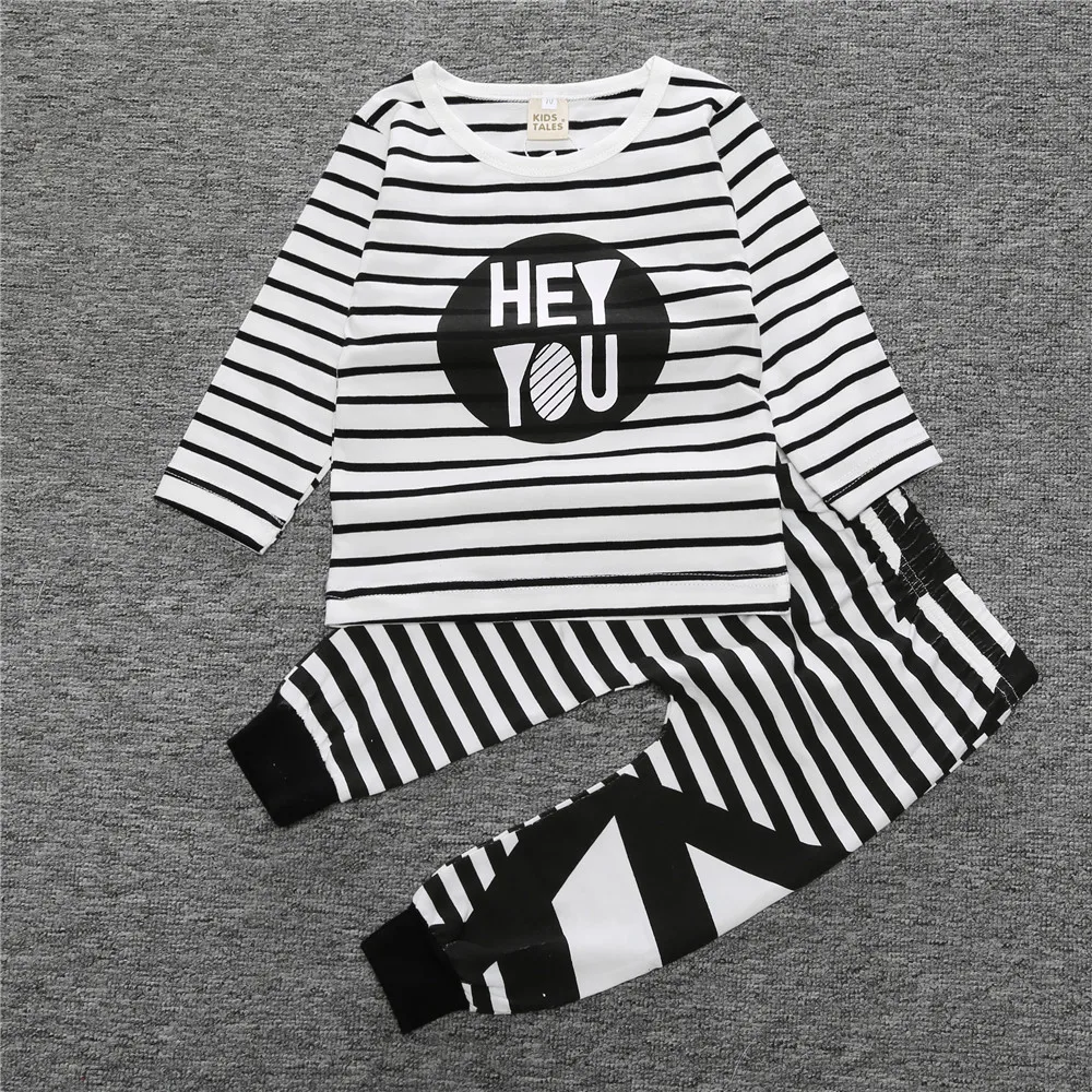2017 New Fashion baby boy girl clothing set cotton letter long-sleeved T-shirt + Striped Pants Baby Clothing Set SY106