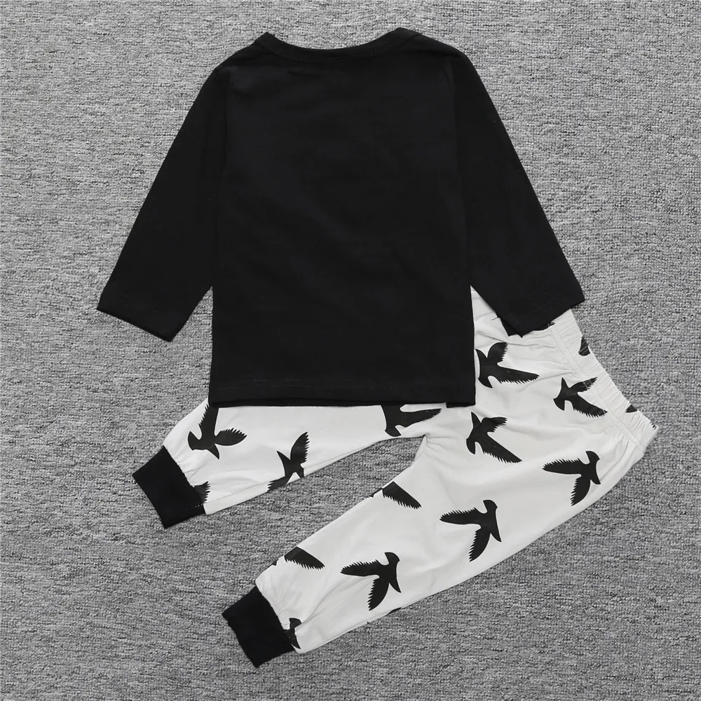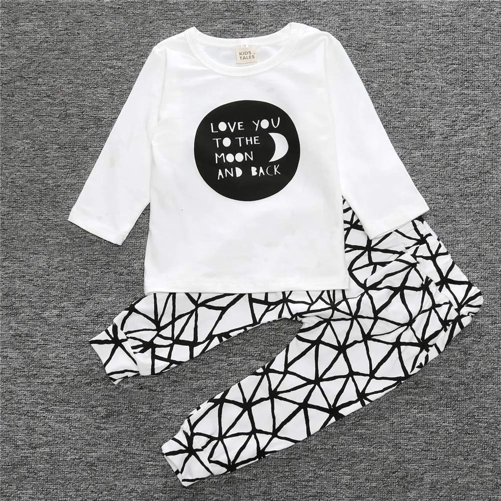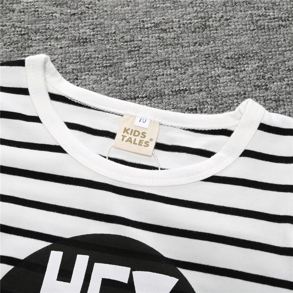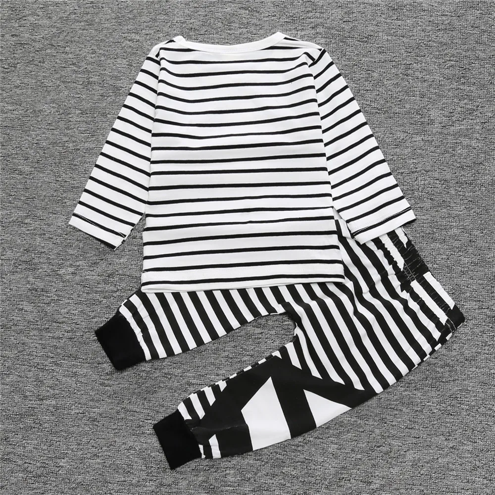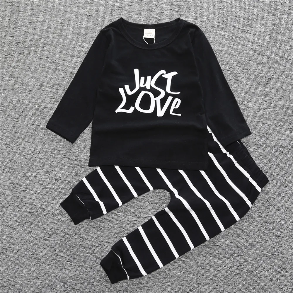 2017 New Fashion baby boy girl clothing set cotton letter long-sleeved T-shirt + Striped Pants Baby Clothing Set SY106