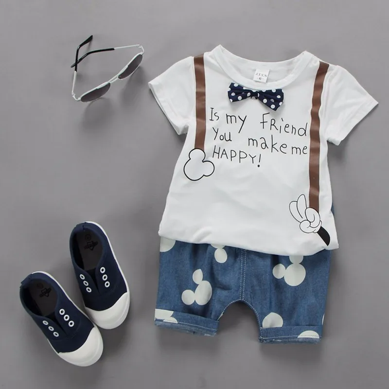 Home » » Baby Clothing » Baby Boys Clothing » Baby Boys Sets » 2017 summer baby boys outfit print shirt+mouse pattern pant 2pcs baby boy clothes set roupa infantil newborn boy set bebek giyim